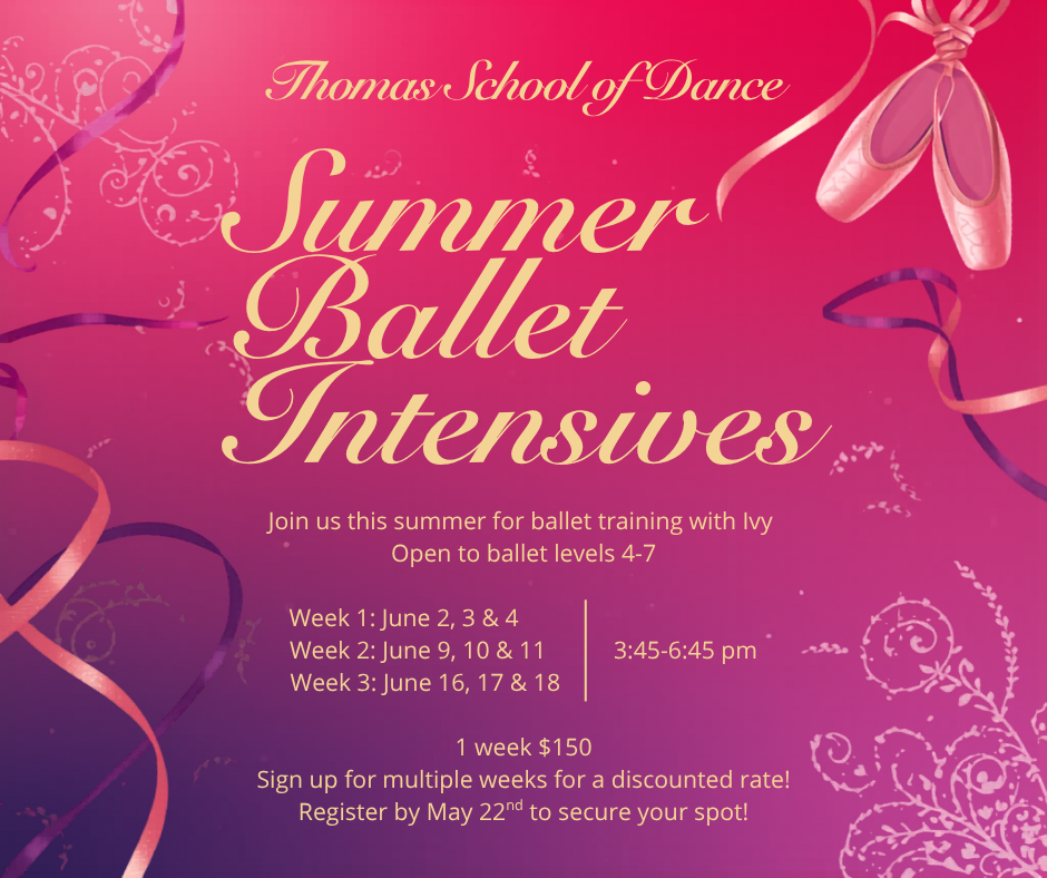 June & Summer Register now for Spring Workshops, June Term, Summer Intensives & Dance Camps: https://dancestudio-pro.com/online/thomasschoolofdance